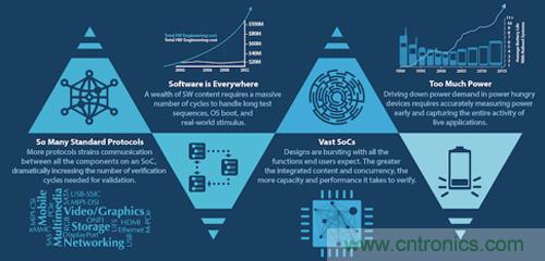 集成的功能數(shù)量越多,運行的并發(fā)性也就越高。這使得驗證系統(tǒng)變得越發(fā)困難,因為一個系統(tǒng)可能包含數(shù)十億門。因此,我們必須重新考慮驗證技術(shù),這是不言而喻的。