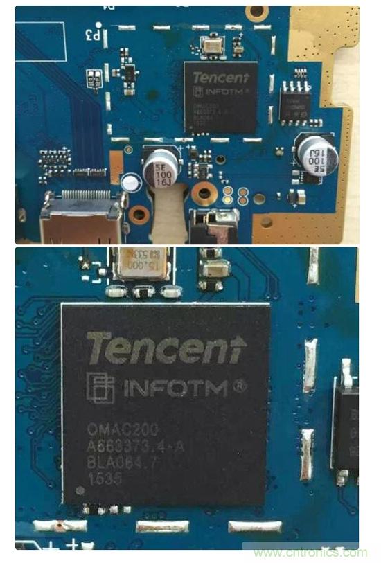 2015年11月9日,騰訊miniStation微游戲機發(fā)布,經(jīng)拆解后發(fā)現(xiàn)主芯片上醒目地印有兩個Logo:Tencent、INFOTM。