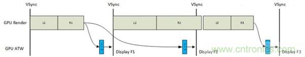 然而問題又來了,一般VR場景很復(fù)雜,我們很難保證每次都在16.66ms內(nèi)完成一次渲染,也就是我們很難保證每個(gè)應(yīng)用都是60fps。那么卡神又提出一個(gè)ATW,就是異步的Timewarp。