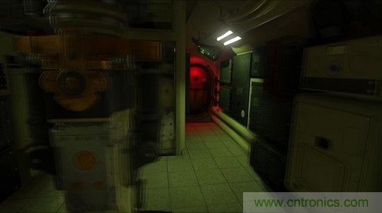 位置抖動是基于方向的Timewarp帶來明顯瑕疵之一。在使用VR設(shè)備時(shí),當(dāng)頭部移動了, 如果在ATW產(chǎn)生圖像幀時(shí)只考慮了旋轉(zhuǎn),而平移卻被忽略了。這意味著當(dāng)你的頭從一邊移動到另一邊時(shí),你看見的離你很近的物體會有多個(gè)圖像的抖動,這種效果在臨近場空間中是非常明顯的,比如下面的這個(gè)潛艇截圖。