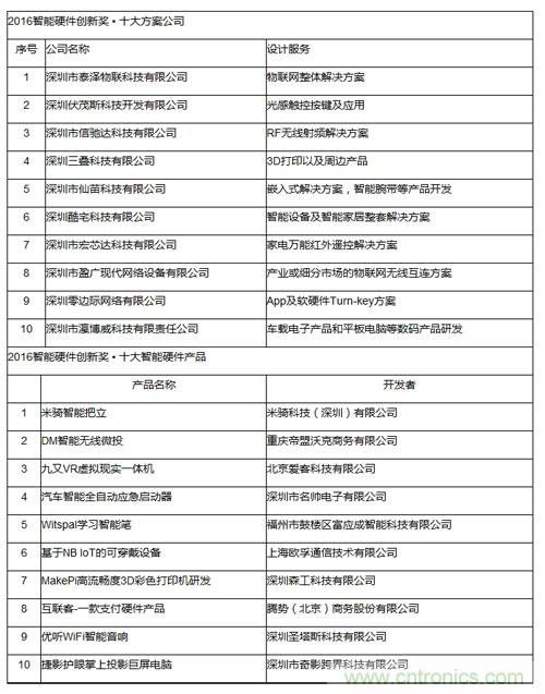 2016十大智能硬件和方案公司創(chuàng)新獎揭曉