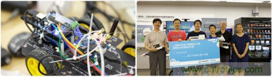 大賽的另一個關(guān)注點來自一支名叫“老少爺們兒”的參賽隊伍,之所以叫這個名字是因為該隊除了有年紀(jì)較大的中年人,還有本次大賽年紀(jì)最小的選手。這只隊伍的參賽項目是“神經(jīng)元探索車”,他們采用Genuino 101(神經(jīng)元)模塊,通過Wi-Fi來控制帶視屏和抓手的小車,實現(xiàn)遠程取物排障。小選手現(xiàn)場非常積極、投入,與年齡比自己大很多的隊友團結(jié)協(xié)作,親自動手制作,最終,他們獲得西門子創(chuàng)客大賽入場券。