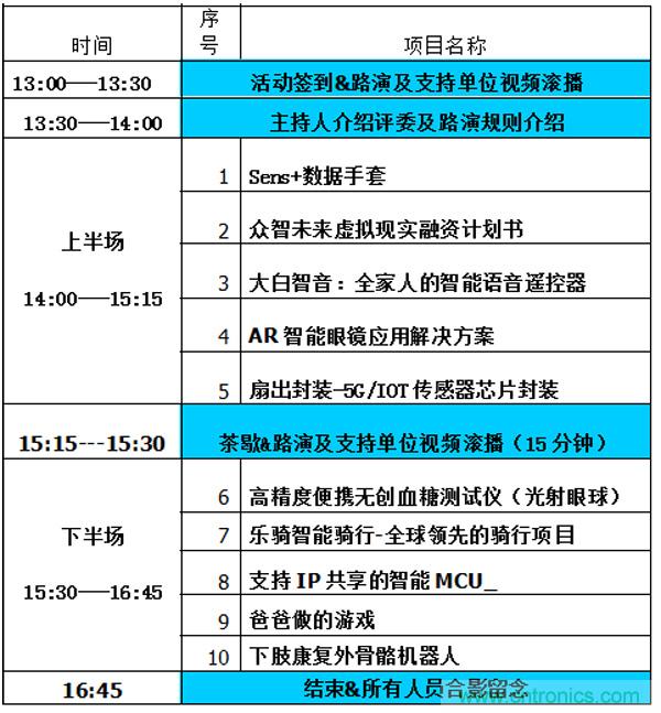 上午的新銳創(chuàng)客和下午的部分路演項(xiàng)目來(lái)自我愛(ài)方案網(wǎng)承辦的創(chuàng)業(yè)之星2016智能硬件分賽區(qū)的優(yōu)秀項(xiàng)目,希望幫助這些優(yōu)秀項(xiàng)目對(duì)接資源,加速創(chuàng)新和成長(zhǎng)!