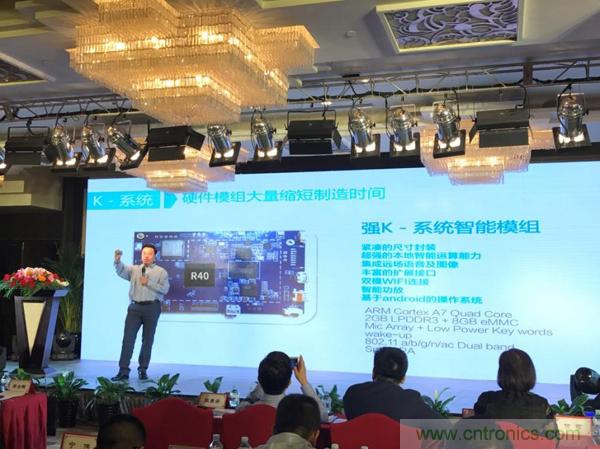 隨后,李智展示了全志最具擴(kuò)展性的智能硬件開(kāi)放平臺(tái)R40系統(tǒng),R40有遠(yuǎn)場(chǎng)語(yǔ)音交互、多顯示接口和音視頻編解碼等優(yōu)勢(shì),非常適用于語(yǔ)音助手、機(jī)器人、定制化的安卓多媒體系統(tǒng)產(chǎn)品開(kāi)發(fā)。