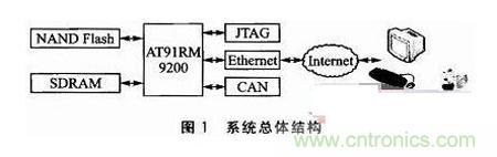 支持遠(yuǎn)程自動(dòng)更新的嵌入式Linux系統(tǒng)機(jī)構(gòu),它可以分為嵌入式終端和遠(yuǎn)程管理系統(tǒng)兩部分。系統(tǒng)的總體結(jié)構(gòu)如圖1所示,嵌入式終端采用基于ARM9架構(gòu)的AT91RM9200微處理器,采用擴(kuò)展的32MB SDRAM,由2片16位數(shù)據(jù)寬度的SDRAM芯片HY57V281620并連而成,采用64MB NANDFla sh存儲(chǔ)芯片K9F1208,運(yùn)行嵌入式Linux系統(tǒng)。遠(yuǎn)程管理系統(tǒng)選用PC機(jī)。嵌入式終端通過以太網(wǎng)連接到遠(yuǎn)程管理系統(tǒng),管理人員可以通過telne t即可對(duì)各個(gè)嵌入式終端進(jìn)行監(jiān)控、管理和遠(yuǎn)程更新。