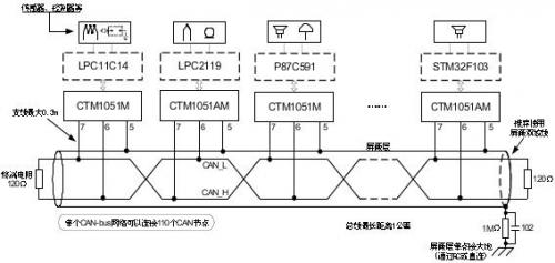 無論總線網(wǎng)絡(luò)長短,網(wǎng)絡(luò)兩端都需要加終端電阻; 通訊距離長時(shí),適當(dāng)增加終端電阻值,減少總線電阻對信號的衰減,如150Ω~300Ω; 有強(qiáng)烈干擾的場合使用屏蔽雙絞線,屏蔽層單點(diǎn)接大地; 收發(fā)器CAN接口輸出的差分電平會隨著供電電壓的變化而變化,應(yīng)確保供電電壓在手冊規(guī)定范圍內(nèi)。
