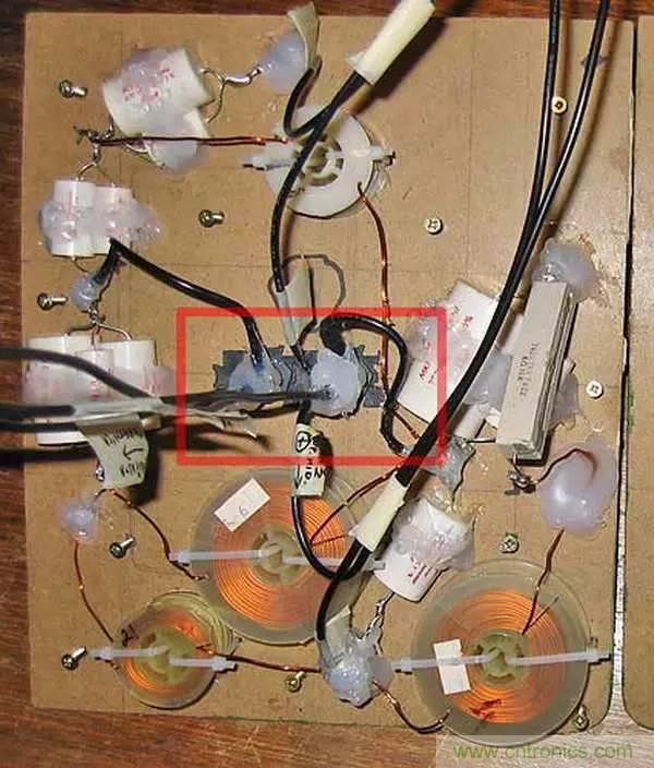 對(duì)于元器件在萬(wàn)能板上的布局,大多數(shù)人習(xí)慣“順藤摸瓜”,就是以芯片等關(guān)鍵器件為中心,其他元器件見(jiàn)縫插針的方法。這種方法是邊焊接邊規(guī)劃,無(wú)序中體現(xiàn)著有序,效率較高。但由于初學(xué)者缺乏經(jīng)驗(yàn),搭出來(lái)的板是這樣的……