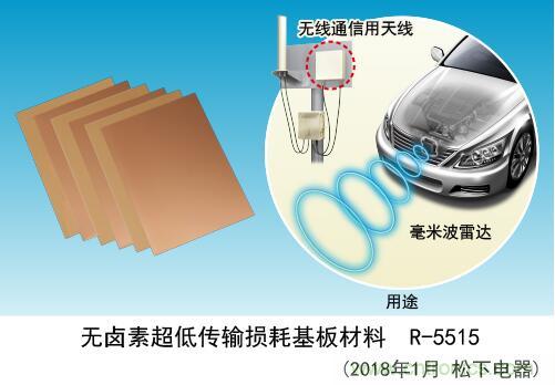 【導讀】 松下電器產業(yè)株式會社汽車電子和機電系統(tǒng)公司開發(fā)出了適用于毫米波段[1] 天線基板的“無鹵素超低傳輸損耗基板材料(型號∶R-5515)”,并計劃于2019年4月開始量產。用熱固性樹脂實現毫米波段中的行業(yè)最高(※1)的低傳輸損耗[2],為天線的高效率化、低損耗化、及降低基板的加工成本做出貢獻。