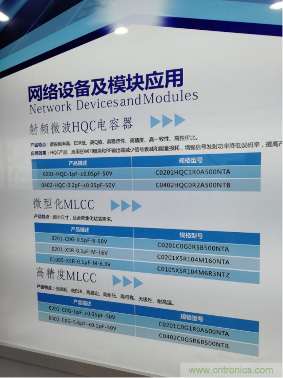 在展區(qū),宇陽(yáng)科技展示了各種應(yīng)用的電容,如網(wǎng)路設(shè)備及模塊應(yīng)用射頻微波HQC電容器、手機(jī)應(yīng)用中超微型MLCC、用于安防產(chǎn)品高溫型MLCC、用于汽車電子應(yīng)用中的高容MLCC等。