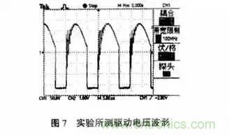 根據(jù)如前所述,驅(qū)動電壓、電流的理想波形不應(yīng)該是一條直線,而應(yīng)該是如圖6所示的波形。實驗波形見圖7。