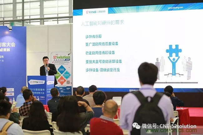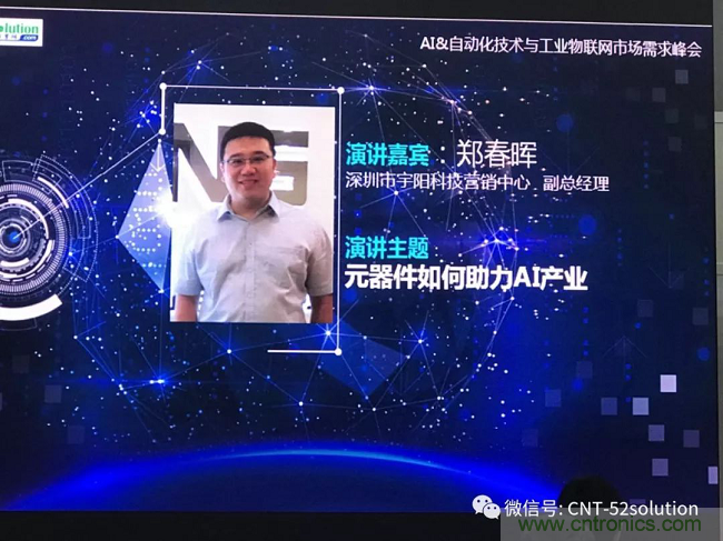 為積極推動跨行業(yè)的電子開發(fā)需求與方案服務(wù)商的對接,大力發(fā)展技術(shù)外包服務(wù),服務(wù)國家創(chuàng)新戰(zhàn)略,搶占人工智能技術(shù)和應(yīng)用的制高點(diǎn),近日,我愛方案網(wǎng)策劃主辦了2018AI&自動化技術(shù)與工業(yè)物聯(lián)網(wǎng)市場需求峰會,這是第六屆中國電子信息博覽會的核心活動。中國優(yōu)秀的元件技術(shù)供應(yīng)商宇陽科技副總鄭春暉在峰會上做《元器件如何助力AI產(chǎn)業(yè)》的大會報(bào)告。
