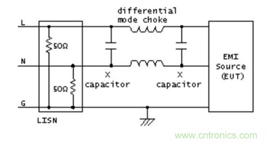 電容的作用是將高頻干擾電壓“短路”,另外,當干擾信號頻率很高時,抑制線圈將產生很大的交流阻抗。圖2顯示了兩種濾波類型的結構,其中,LISN是用于測量目的的線性阻抗穩(wěn)定網絡。如果是共模問題引起的干擾,X類型電容基本上沒有作用,因為兩線上的干擾電壓是一樣的。因此,了解干擾類型對于選擇合理的電路結構將起重要作用,并為解決問題提供技術依據。