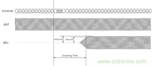 【導(dǎo)讀】開關(guān)時(shí)間(Switch Time)或切換時(shí)間指的是開關(guān)從“導(dǎo)通”狀態(tài)轉(zhuǎn)變?yōu)?ldquo;截止”狀態(tài)或者從“截止”狀態(tài)轉(zhuǎn)變?yōu)?ldquo;導(dǎo)通”狀態(tài)所需要的時(shí)間。具體來講是指從DUT接收到通道切換命令,到在被切換到的通道上信號(hào)的功率達(dá)到滿幅度值的90%的時(shí)間。