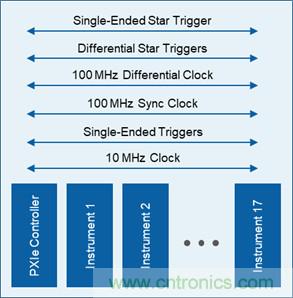 ● PXI Express保留了原始的PXI規(guī)范中的10 MHz背板時(shí)鐘,以及單端PXI觸發(fā)總線和長度匹配的PXI星形觸發(fā)信號(hào)。