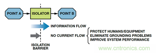 如圖 2 所示,隔離柵在 RS-232 總線和與該總線相連的每個系統(tǒng)之間提供電隔離,既允許在兩點之間傳輸數(shù)字數(shù)據(jù),又可防止接地環(huán)路電流流過;這樣可以消除耦合到通信電纜上的噪聲,從而降低信號失真和誤差。