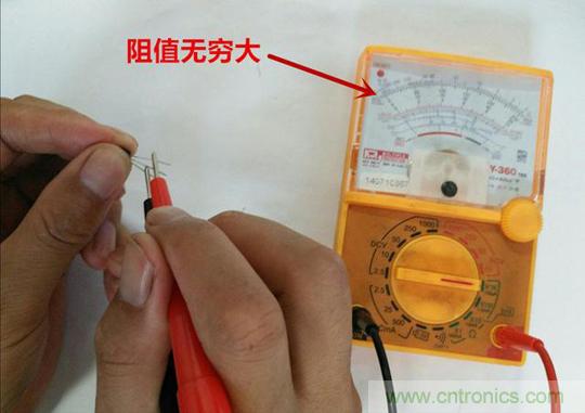 這里所講的使用的是指針式萬用表,其指針擺動幅度、直觀、明顯,數(shù)字式的也可以,原理上一致,區(qū)別在于表筆極性上