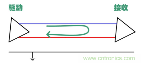 先介紹共模干擾,圖 1、圖 2分別給出了差模和共模干擾及其傳輸路徑。圖中的驅(qū)動(dòng)器及接收器為差分信號(hào)傳輸,類似CAN總線。差模干擾產(chǎn)生于兩條傳輸線之間,共模干擾則在兩條線中同時(shí)產(chǎn)生,其電勢(shì)是以地為參考。