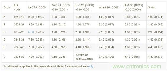 貼片鉭電容封裝、尺寸
