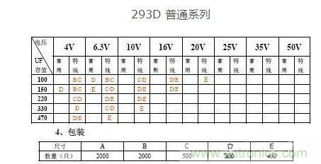 ① 表示系列,VISHAY 有293D 和593D 兩個系列,293D 表示普通鉭電容,593D