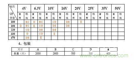 ④ 表示電容的耐壓,指在85℃時額定直流電壓,鉭電容的耐壓范圍從4V---50V