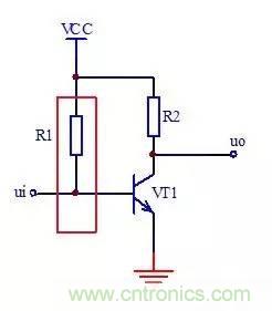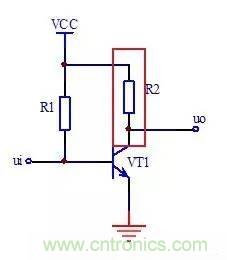 當(dāng)電流流過電阻時(shí),就在電阻兩端產(chǎn)生電壓,如圖集電極負(fù)載電阻R2就是起到這個(gè)作用的,將流過電阻R2的電流轉(zhuǎn)換成電壓從UO輸出,這種電阻在電路中一般稱為集電極負(fù)載電阻。
