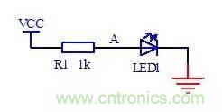 在電源與電路的A之間接入電阻時(shí),A點(diǎn)的電壓就比電源電壓低,可以為發(fā)光二極管提供合適的電壓。電阻R1同時(shí)限制該條支路的電流,保護(hù)發(fā)光二極管不會(huì)因?yàn)殡娏魈蠖鵁龎?,這種電阻在電路中一般稱為降壓電阻或者是限流電阻。