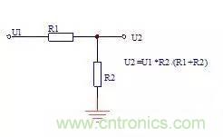 當(dāng)一個(gè)電壓U1太高時(shí),可以用兩只電阻構(gòu)成分壓電路,降低電壓為U2,U2符合電阻分壓公式U2=U1*R2/(R1+R2) ,這種電阻在電路中一般稱為分壓電阻。