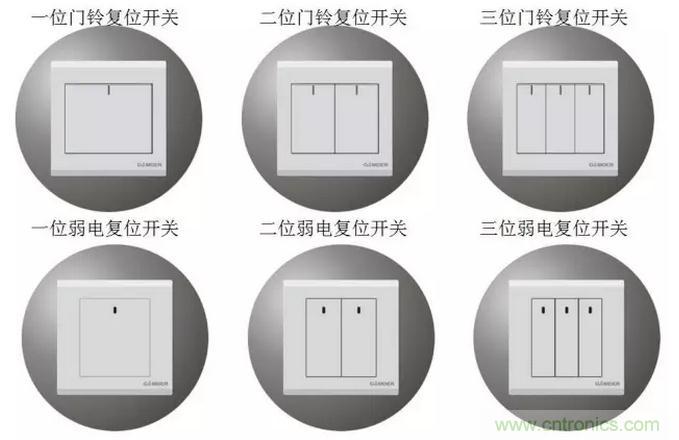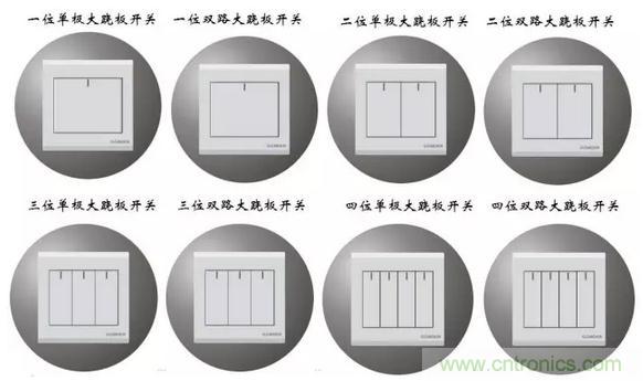 開關(guān)類(使用功能):一開、二開、三開、四開指開關(guān)上的按鍵,又名:一位、二位、三位、四位或單聯(lián)、雙聯(lián)、三聯(lián)、四聯(lián)。