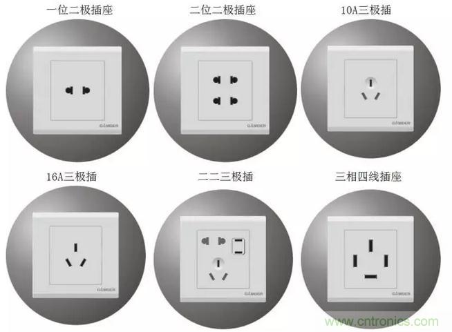 插座類(功能):二極插、二二插、三極插、二三插、二二三插、三相四線插座