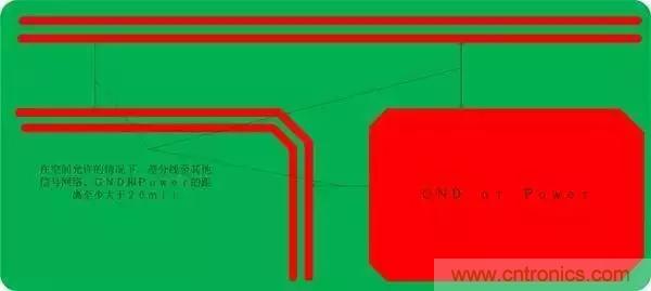 6.為了減少串?dāng)_,在空間允許的情況下,其他信號網(wǎng)絡(luò)及地離差分線的間距至少20mil(20mil是經(jīng)驗(yàn)值),覆地與差分線的距離過近將對差分線的阻抗產(chǎn)生影響;
