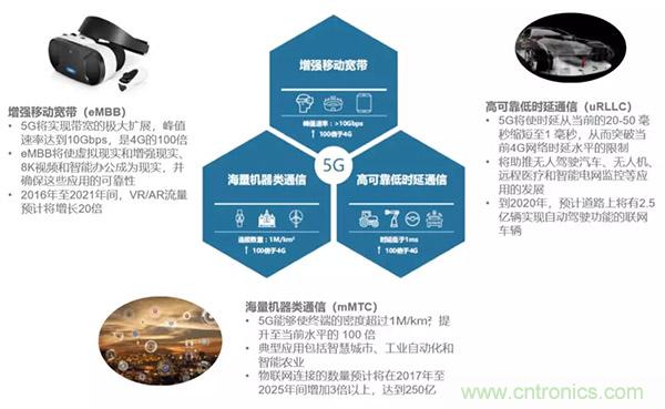 未來5G將應(yīng)用在增強(qiáng)移動(dòng)寬帶(eMBB)、高可靠低時(shí)延通信(uRLLC)、海量機(jī)器類通信(mMTC)三大場(chǎng)景。而這需求的是非常寬的帶寬,非常高傳輸?shù)乃俾?,非??煽康牡脱訒r(shí)的連接,另外,還需要海量機(jī)器類型連接的網(wǎng)絡(luò)。