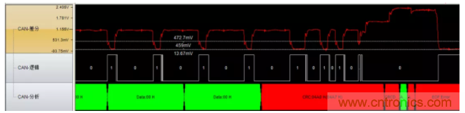當(dāng)總線支線過長,上升沿和下降沿產(chǎn)生臺階現(xiàn)象,當(dāng)臺階正好處于0.5V邏輯識別閾值附近時,容易導(dǎo)致位寬度失調(diào),從而使接收節(jié)點(diǎn)接收錯誤,針對此類錯誤給出如下解決方案: