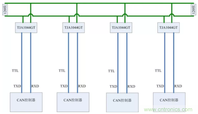 采用CANBridge中繼器,CANHub集線器等組網(wǎng)設(shè)備進(jìn)行分支。這些設(shè)備每路都具備獨(dú)立的CAN控制器,所以可以將每段形成獨(dú)立的直線拓?fù)?,方便施工?nbsp;