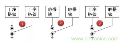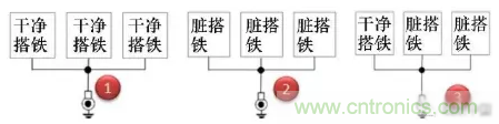 第1種方式干凈搭鐵回路之間的回路并接是允許的;第2種臟搭鐵回路之間的回路并接也是完全可以接受的;對(duì)于第3種臟搭鐵與干凈搭鐵回路并接,通常是可以接受的,但需要得到相關(guān)專業(yè)的評(píng)審?fù)ㄟ^。