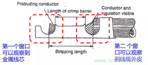 插入時(shí)要留意長(zhǎng)短深度。線纜插入過短容易導(dǎo)致端接達(dá)不到規(guī)定的拉拔力,因?yàn)榫€纜與端子之間的金屬間接觸減少了;而線纜插入過深則會(huì)縮短連接器的使用壽命。以車針壓接為例,當(dāng)?shù)谝粋€(gè)窗口可以觀察到金屬線芯,第二個(gè)窗口可以觀察到線纜外皮時(shí),表示線芯的位置是剛好的。
