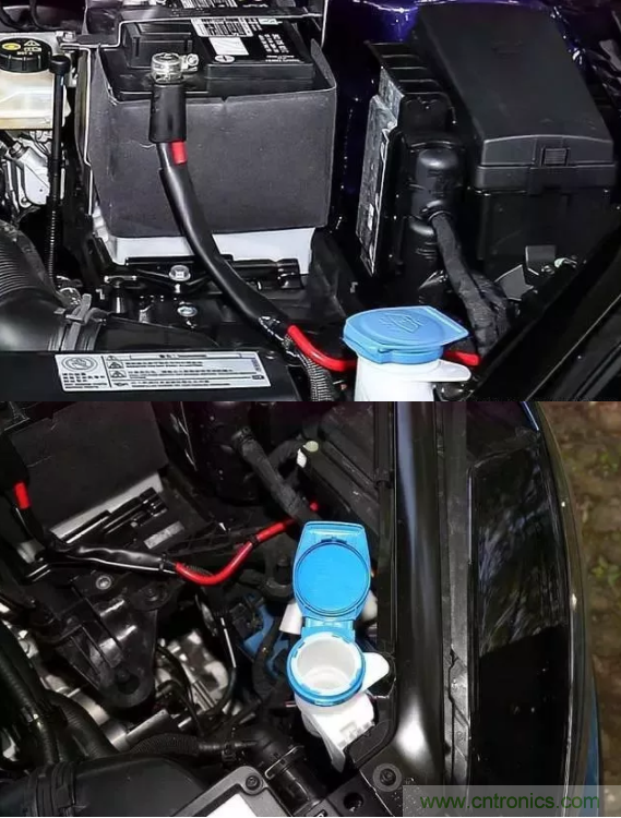 但這不是我們關注的重點。高爾夫的蓄電池布置在整車左側(cè)靠近駕駛室的地方,機艙電器盒緊挨著蓄電池進行布置。這種布置方式,對于降低線束重量和線束成本非常有利??梢詷O大的縮短蓄電池到機艙保險盒,機艙保險盒到駕駛室保險盒的粗導線的長度。
