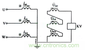 角形,構(gòu)成零序電壓過濾器,供給監(jiān)視線路絕緣的電壓繼電器。