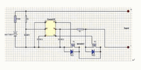 ---此保護(hù)回路由兩個MOSFET和一個控制IC外加一些阻容元件構(gòu)成??刂艻C負(fù)責(zé)監(jiān)測電池電壓,并控制兩個MOSFET的柵極,MOSFET在電路中起開關(guān)作用,分別控制著充電回路與放電回路的導(dǎo)通與關(guān)斷,fuse為熔斷器起二級保護(hù),C2為延時電容,該電路具有過充電保護(hù)、過放電保護(hù)、過電流保護(hù)與短路保護(hù)等功能。
