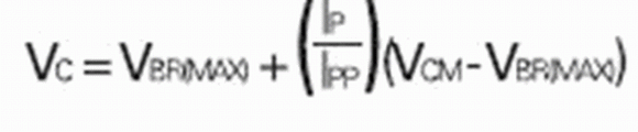 假設(shè)二極管的電壓是VBR(MAX)(最壞情形中的導(dǎo)電開端)和VCM(對應(yīng)于最大電流IPPM的箝位電壓)之間電流的線性函數(shù),并且VBR(MAX)位置的電流相對于IPPM可忽略不計(jì),則中等電流時箝位電壓的保守估算值為