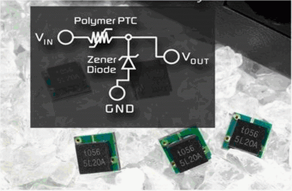 對于電感性電壓尖脈沖的箝位和平滑,PolyZen器件特別有效。在出現(xiàn)電感性尖脈沖時,齊納二極管把電流旁路到地,直到電壓降低到正常的工作范圍。在供電電壓出錯的情況下,PolyZen器件對電壓進行箝位,把過大的電流旁路到地,防止電源的錯誤造成影響。PolyZen器件的電壓與電流響應特性比較平坦,有利于對輸出電壓進行箝位,即使輸入電壓和電源電流變化的情況下也能做到這點。