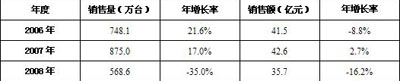 表1 2006-2008年中國MP3/MP4播放機(jī)機(jī)市場銷售情況