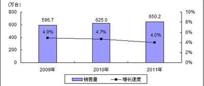 圖1 2009-2011年中國MP3/MP4播放機(jī)市場銷售量預(yù)測