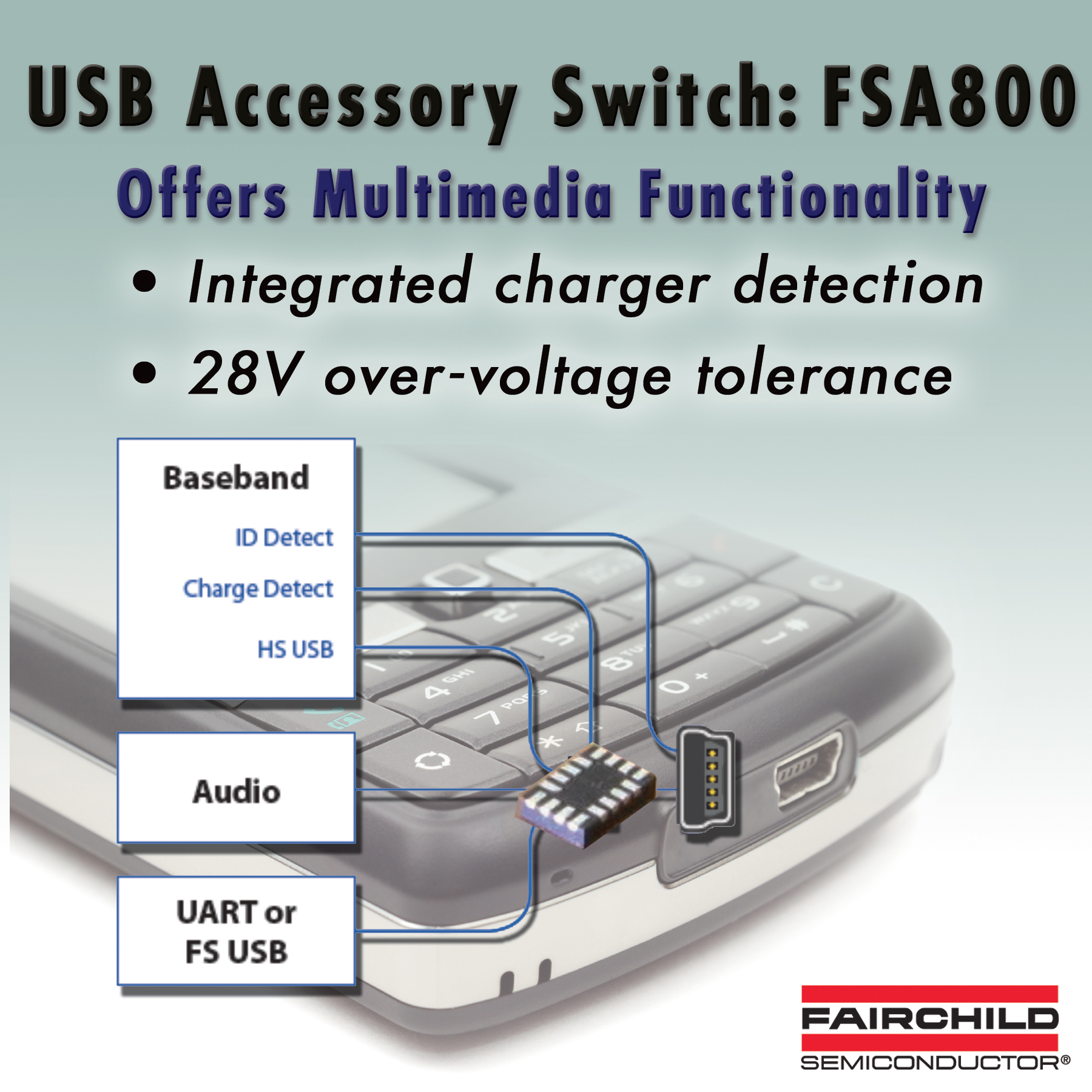 FSA800是飛兆半導(dǎo)體全面的USB解決方案的一部分,這些開關(guān)產(chǎn)品適用于USB端口隔離,連接器分享和信號(hào)多路復(fù)用。它們通常用于USB端口的分享和路由,以及隔離閃存/ uDisk可移動(dòng)裝置。這些開關(guān)產(chǎn)品的設(shè)計(jì)符合USB2.0全速(FS)和高速(HS)規(guī)范,帶寬超過720MHz。