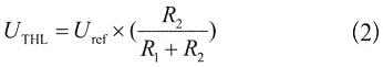 式(1)和式(2)是理論上的公式,實際上,為了將上述的滯回原理應用于實際的電池系統(tǒng),還要考慮一個參考電壓的問題。參考電壓Uref是不能變的,否則上下電壓門限就會發(fā)生變化。而且參考電壓是由電池電壓供電產(chǎn)生的,它必須比電池電壓低的多,而且功耗極小。