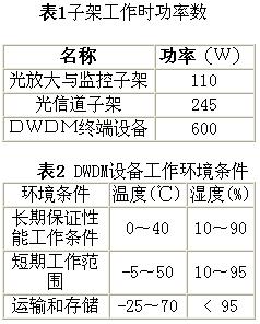 32X2.5GDWDM終端由一個(gè)光放大與監(jiān)控子架和兩個(gè)光信道子架組成。光放大及監(jiān)控子架和光信道子架采用靠背椅結(jié)構(gòu),子架的光、電信號(hào)均采用前出線,高度為11U。3U電源子架提供-48V電源,機(jī)架采用21″標(biāo)準(zhǔn)機(jī)架。子架工作時(shí)的功率參數(shù)和環(huán)境條件見表1與表2。