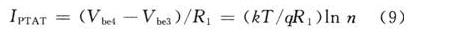 由式(9)可知,流經(jīng)R1的電流與電源無關(guān),只與絕對溫度成正比,即得到PTAT電流。