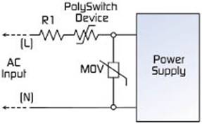 - 將PPTC器件與MOV組合在一起安裝于AC輸入的初級(jí)