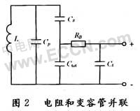 考慮圖1所示變?nèi)莨苤C振電路,不難看出回路的頻率調(diào)諧范圍依賴于變?nèi)莨艿挠行щ娙葑儽群碗娐分胁ⅰ⒋?lián)電容的大小。