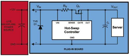 圖1 典型的熱插拔電路配置