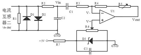 在檢測電流的大小時,根據(jù)測試電流的周期(工頻)按照每個周期40個點進行采樣,采樣一個周期后,根據(jù)電流互感器的衰減倍數(shù)和提升電壓的數(shù)值,通過軟件算法計算出實際的電流有效值。電路應(yīng)滿足如下條件,當(dāng)交流電流的瞬時值達到正向峰值時,放大器輸出5V;當(dāng)交流電流的瞬時值達到負(fù)向峰值時放大器輸出0V。